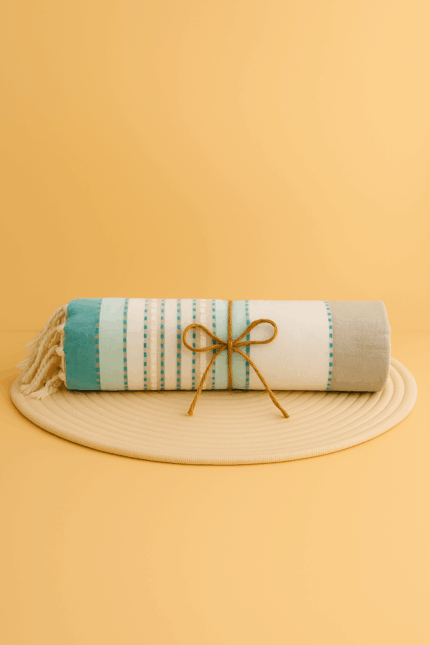 Nos foutas sont fabriquées à partir de coton recyclé, dans le respect du commerce équitable et du savoir-faire tunisien.